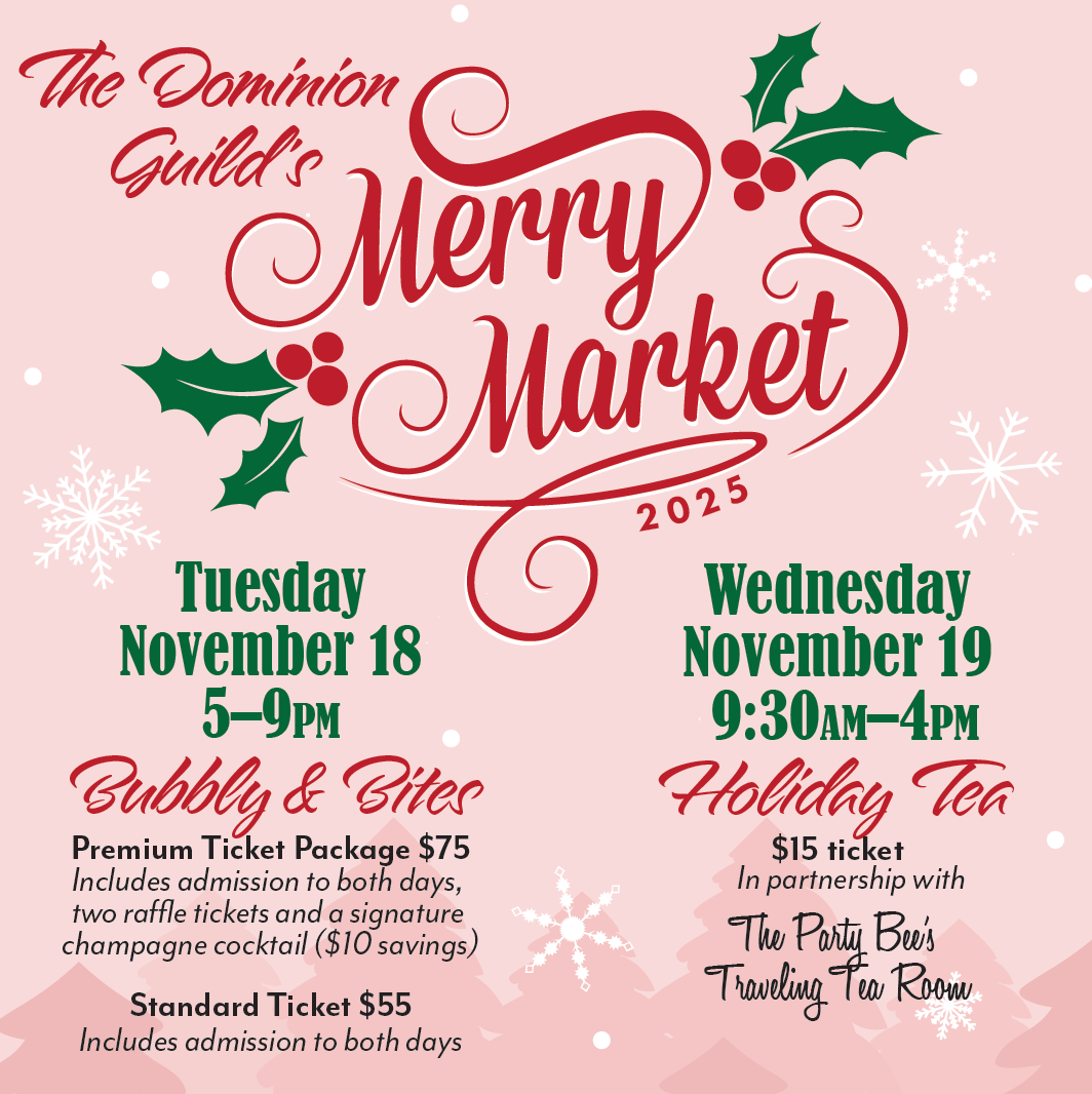 Shop for a cause at The Dominion Guild Merry Market, November 18 & 19 at the Knights of Columbus in Arlington. This holiday shopping bazaar features twenty-five vendors with an array of distinctive merchandise. All proceeds from the Merry Market benefit nine NOVA non-profits. For tickets, event/vendor info, and a list of grant recipients and sponsors, visit their website!
