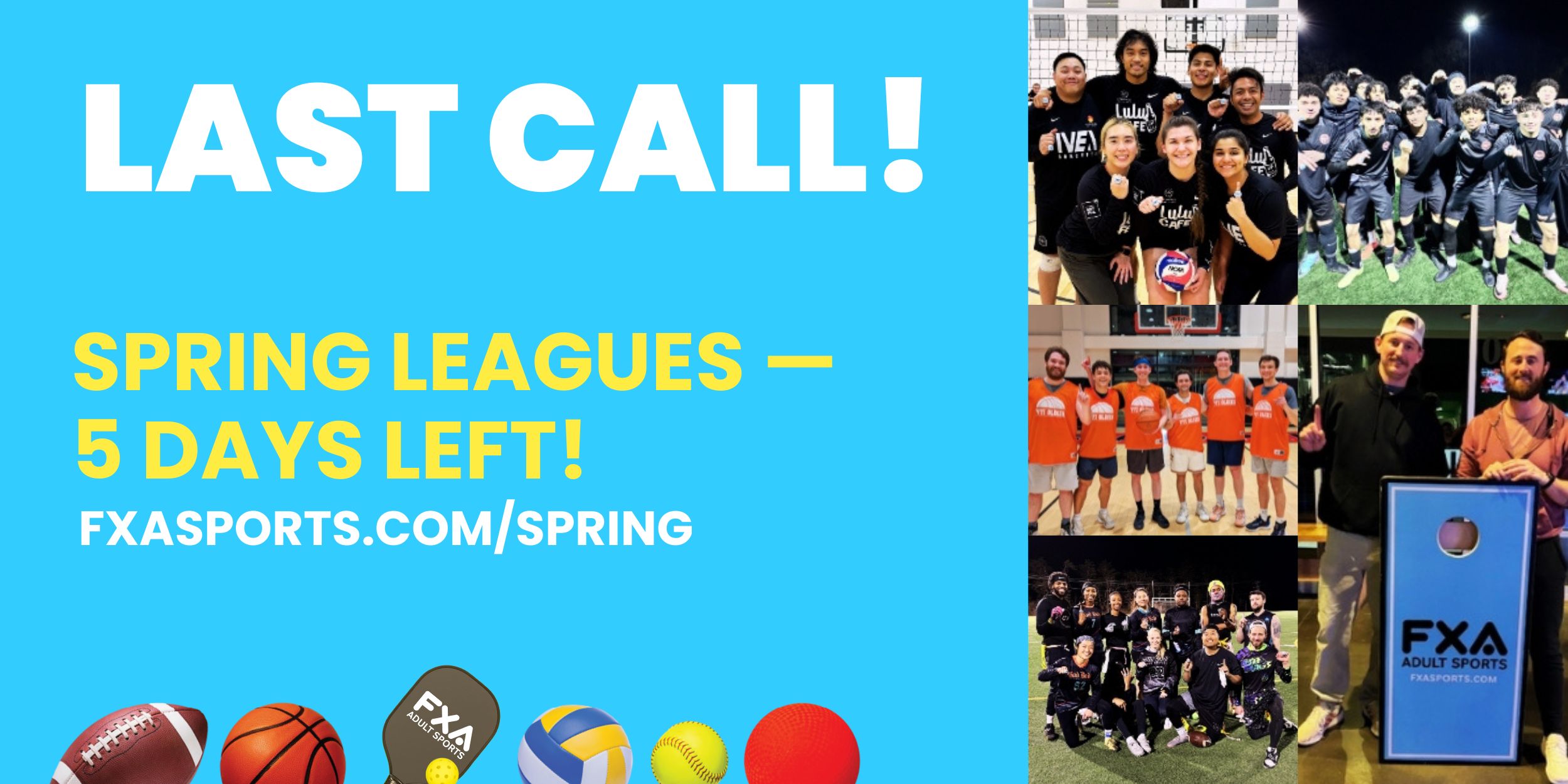 You read that correctly — this is last call for Spring Leagues. You have 5 days!